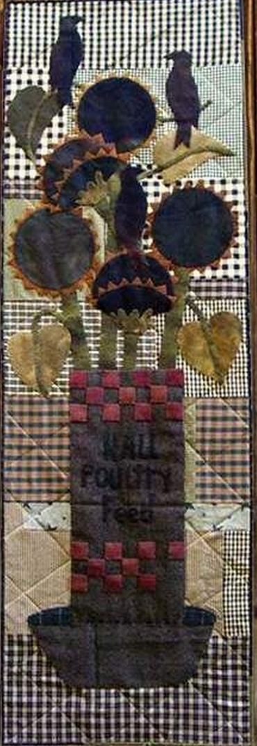 We have a large sycamore tree in our front yard here in Florida. I'm guessing it's at least 70 feet tall and the branches reach out probably as wide in all directions. It's the first tree to lose its leaves in the fall and then the last one to get the new leaves in the spring. While it's bare in the fall and winter months, we have a flock of crows that comes and perches on those branches and chatter the day away. I've seen so many birds in that tree that it looks like it's covered with black leaves. The crows also like to eat the last of the sunflowers that are going to seed. One year I managed to save some of the sunflowers. I dried them upside down for several weeks and then the following year put them in a Purina Poultry Feeder I have in the house. It was so much fun to see these tall skyscrapers in that feeder that it inspired me to make this project. If you are like me, you have a lot of table runners, wall hanging, quilts, so because of this, I chose to decorate a door. This is the first in a line of "Door Hangers" that will be presented to you. I think with all the different seasons it would be fun to have many.